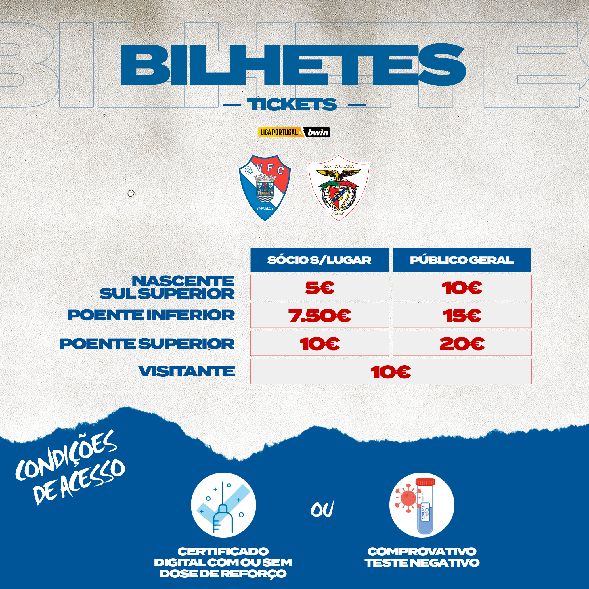 Os bilhetes para a receção ao CD Santa Clara já estão disponíveis para compra. Os ingressos para público geral variam entre os 10€ e os 20€.