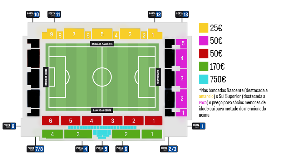 • Sócios menores têm 50% desconto nos lugares anuais nas bancadas nascente e sul superior